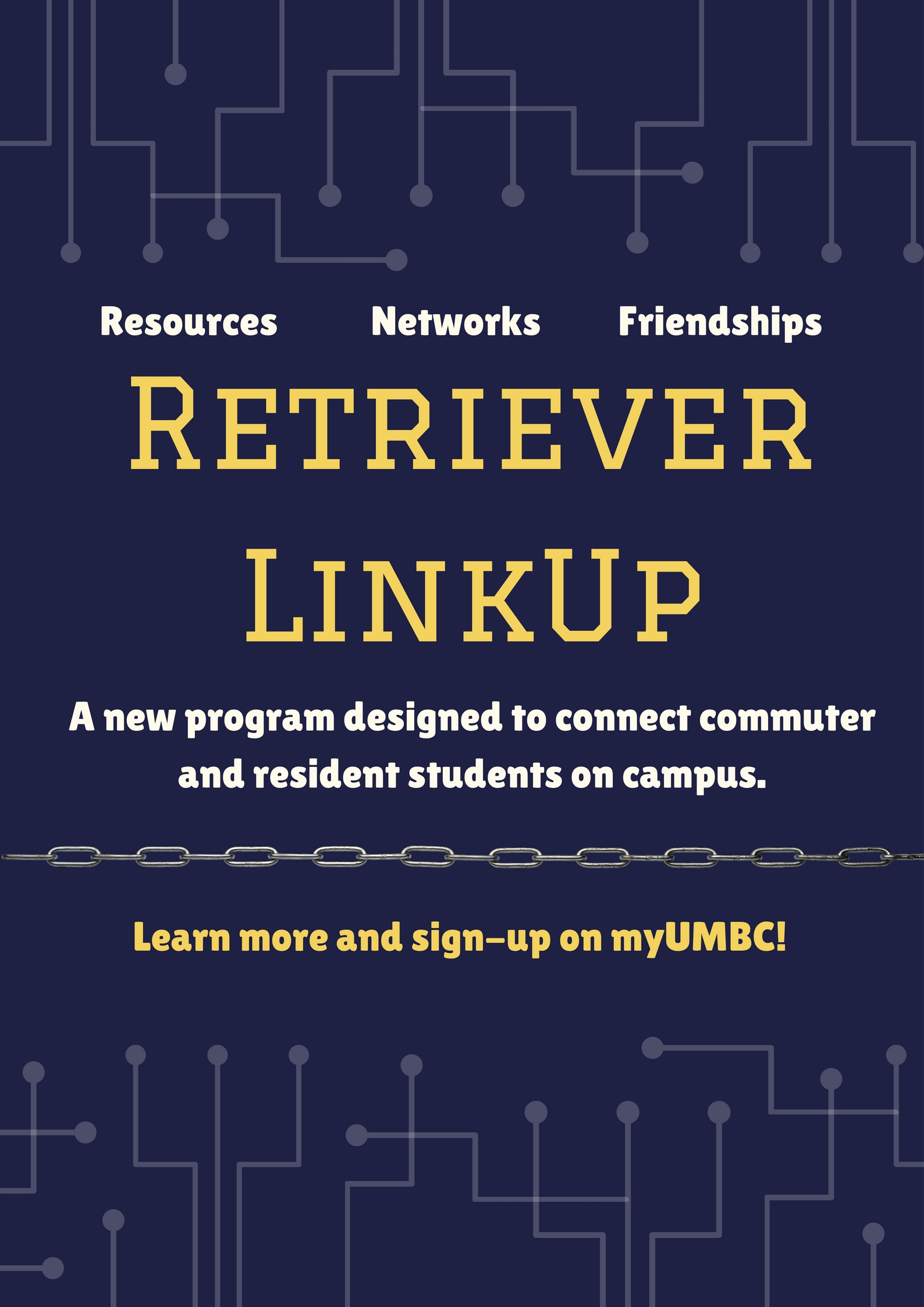 Looking for a way to get connected as you start your college career? Sign up for our inaugural Retriever Link-Up program! Commuters and residents are often seen as two exclusive groups on campus, and this program aims to bridge the gap between residential and commuter students by creating a unified network of UMBC students.