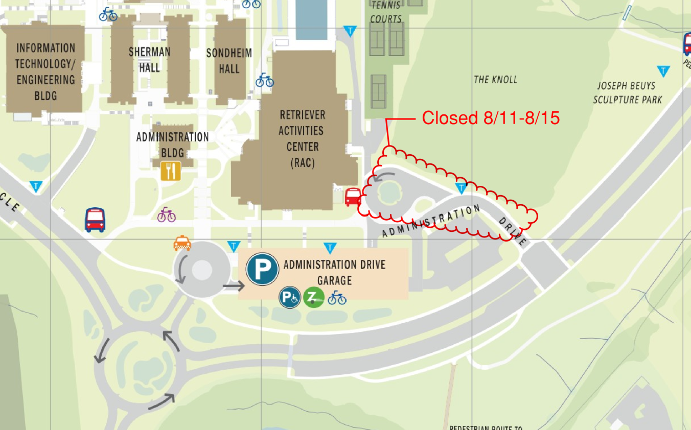 Administration Drive Garage (faculty and staff) Permit Holders (Gated Parking) may park on the upper level of the garage at no cost during the closure. Garage access will be 2-way entering the upper level during the Administration Drive closure. Please exercise caution when entering and exiting. Please refrain from parking in the designated service spaces.