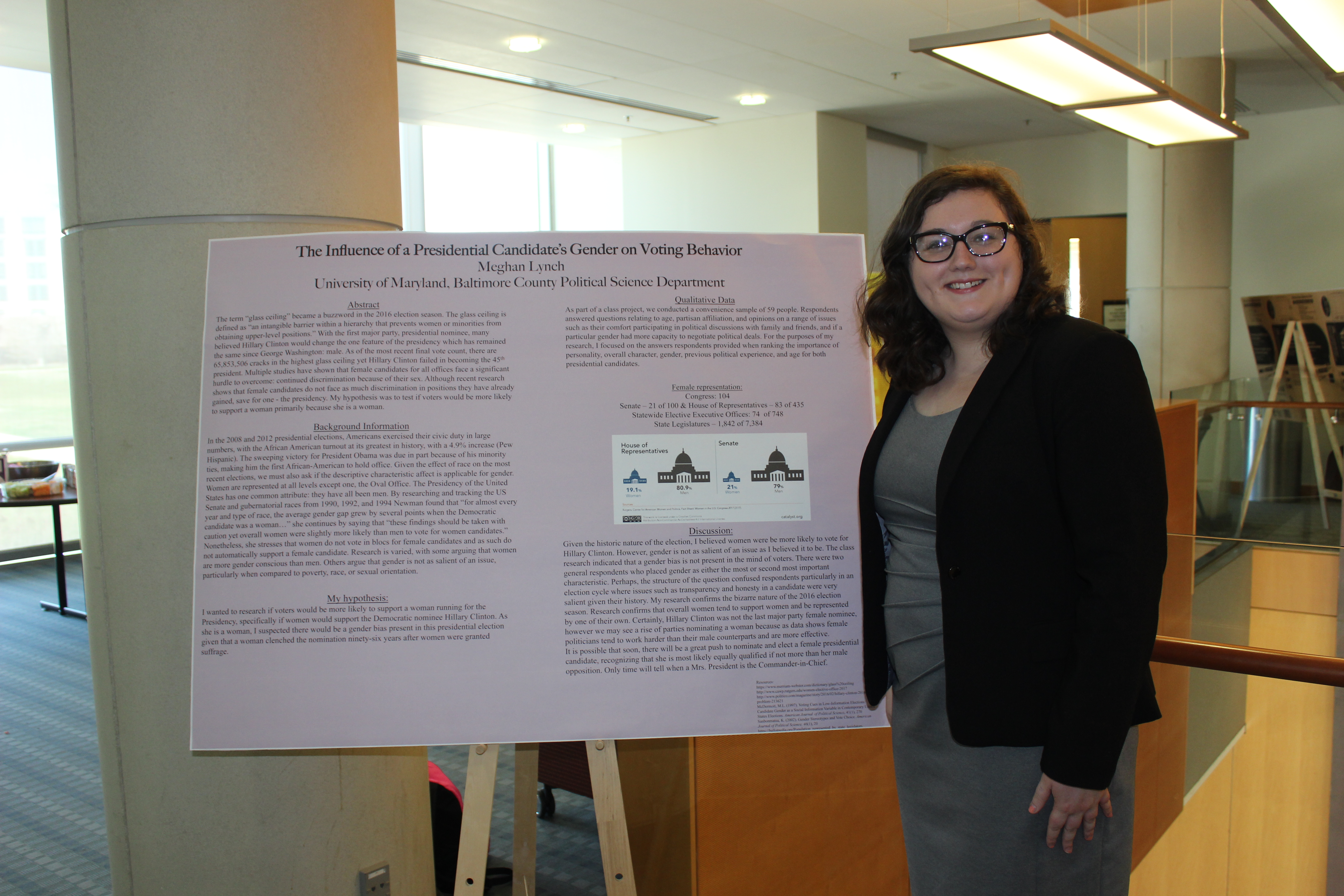 Below are a few photos from previous conferences to give you an idea of what the conference would look like. In the pictures, you can see an example of a poster. Also, the UMBC Omicron Eta Pi Sigma Alpha group has received funding from the national organization of Pi Sigma Alpha to cover the costs associated with your participation in the conference, including the printing and mounting of your poster on a posterboard and lunch the day of the conference. Once we know who is participating, we will distribute information about how to make a poster in Powerpoint and if there is enough interest we will also hold a workshop.