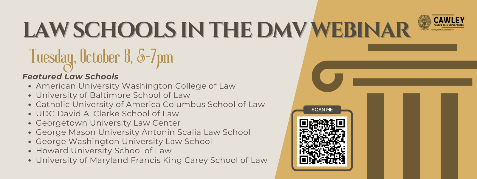 Come learn about attending law school in our nation's capital from admissions representatives from all nine (9!) DMV-area law schools.