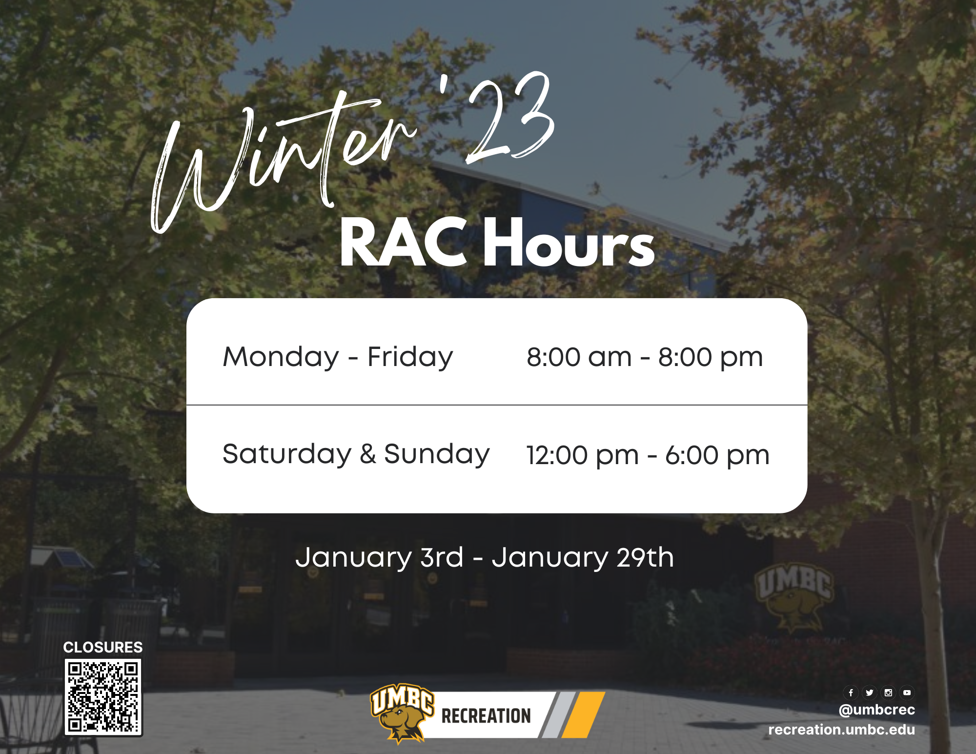 Winter Session RAC Building Hours