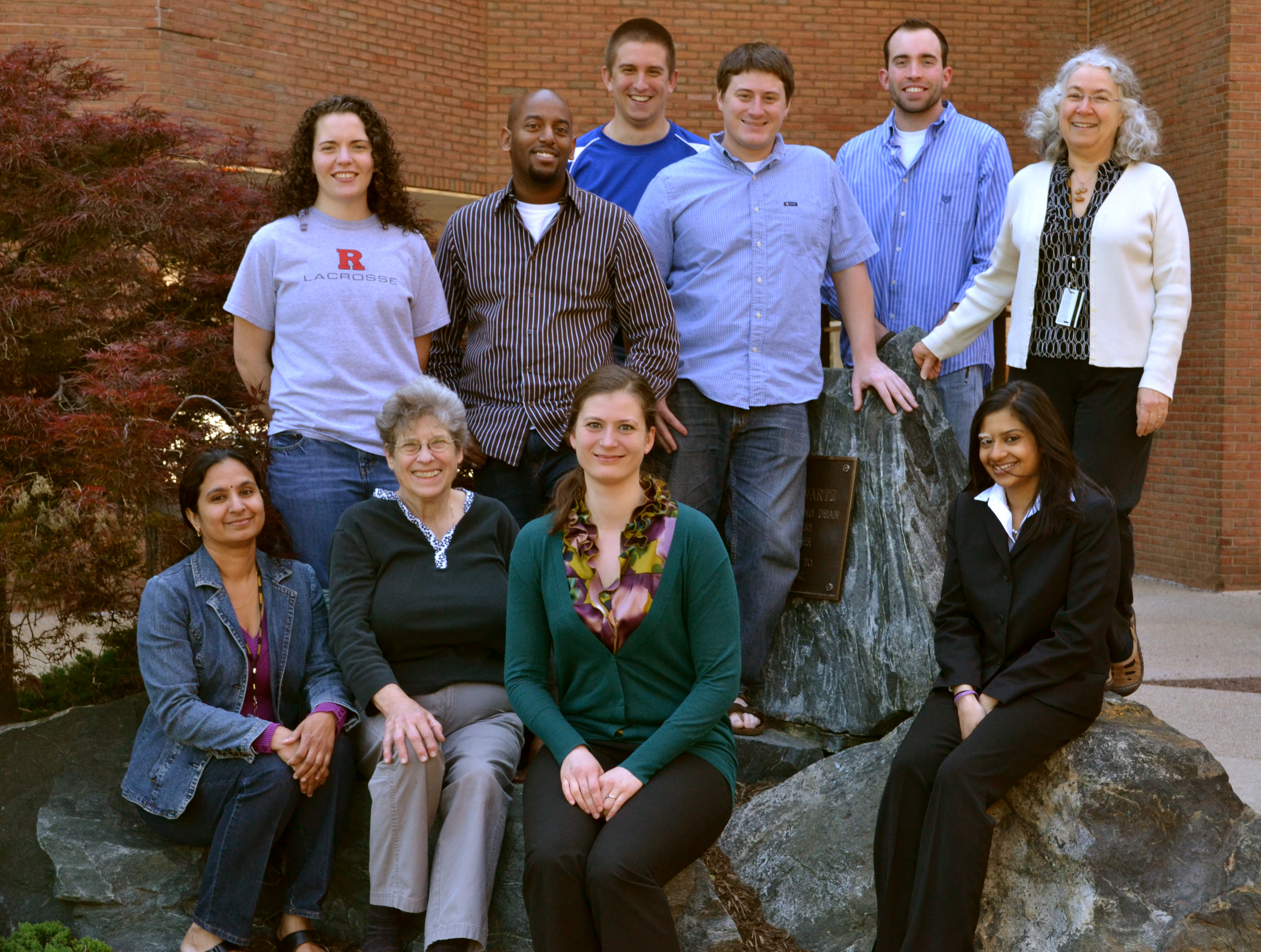 Members of the Rosenberg Lab. Rosenberg and Horn are in the back row (Horn: brightest blue shirt, Rosenberg: white cardigan).