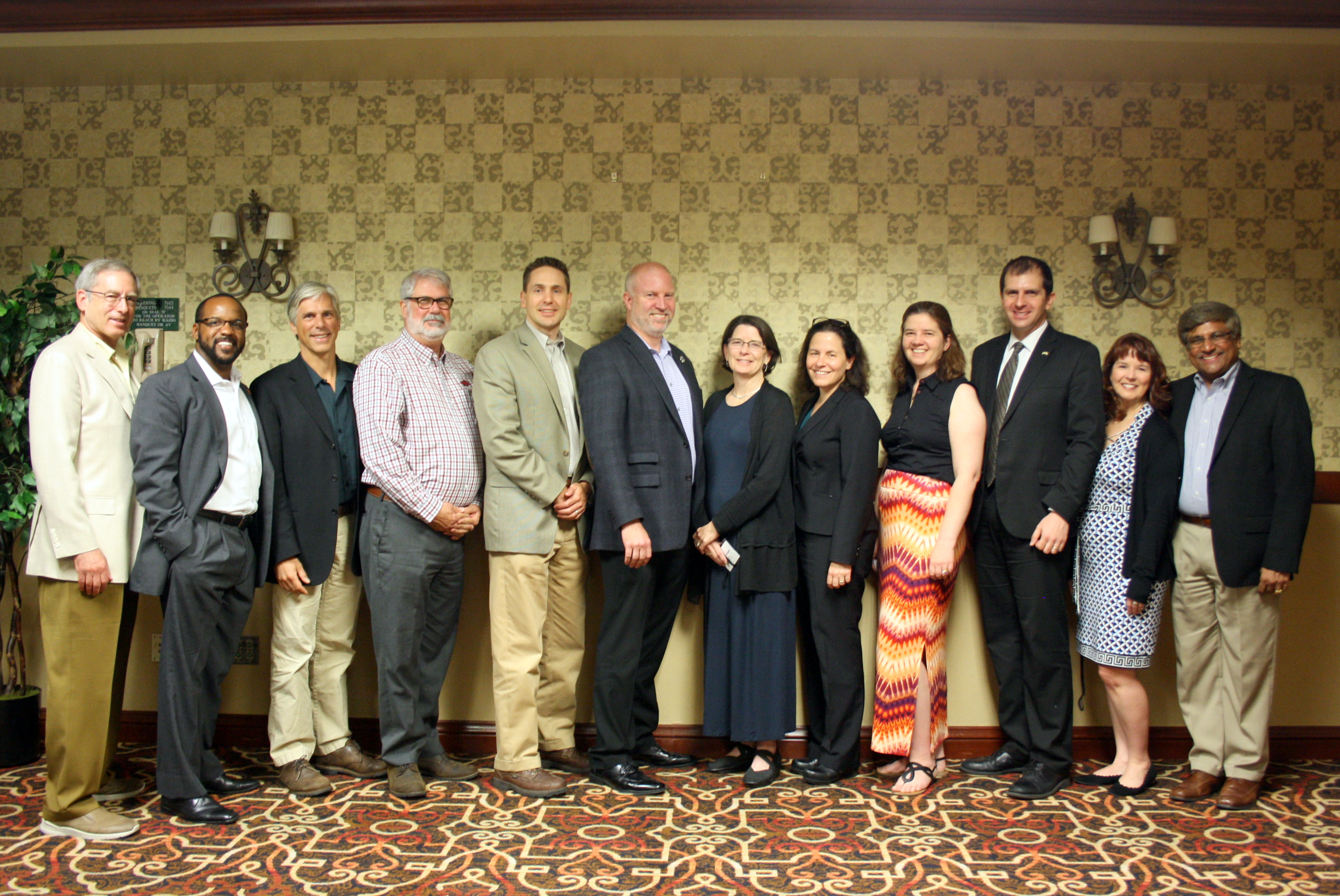 Induction of first class of APLU CoR Research Leader Fellowship Program. Left to right: Howard Gobstein, Robert Nobles, Kevin Gardner, Ralph Davis, Jason Carter, Doug Delahanty, Faith Kirkham Hawkins, Jane E. Strasser, Gillian Wilson, Don Engel, Alicia Knoedler, Sethuraman "Panch" Panchanathan. Photo credit: Sarah Rovito.