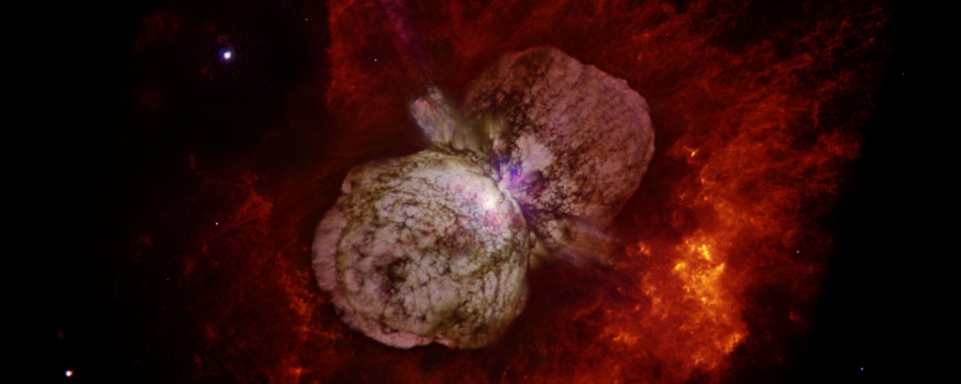 Image: The supermassive star Eta Carinae is at the center of two huge and expanding clouds of dust and other material, the result of an eruption about 150 years ago. Nathan Smith/NASA.