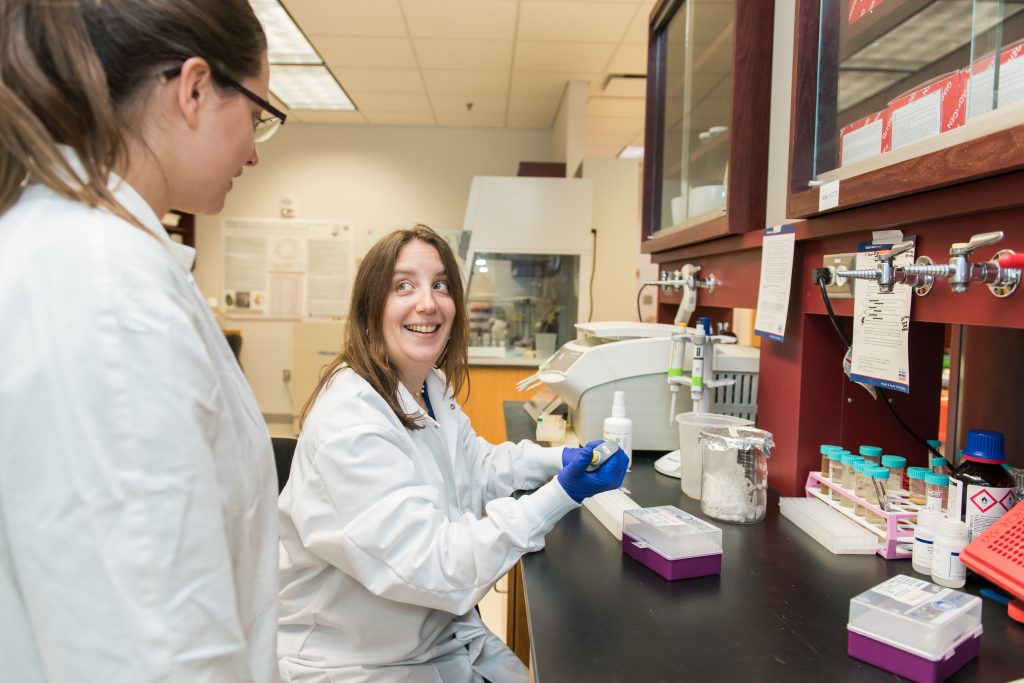 Maggie Holland (right) and Chris Swan in an ILSB lab.