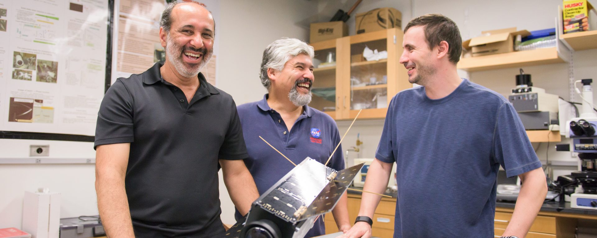 Banner image: Core HARP team members Vanderlei Martins (left); Roberto Borda, assistant research scientist with UMBC’s Joint Center for Earth Systems Technology (JCET); and Dominik Cieslak, assistant research scientist with JCET. Photo by Marlaynd Demond ’11 for UMBC.
