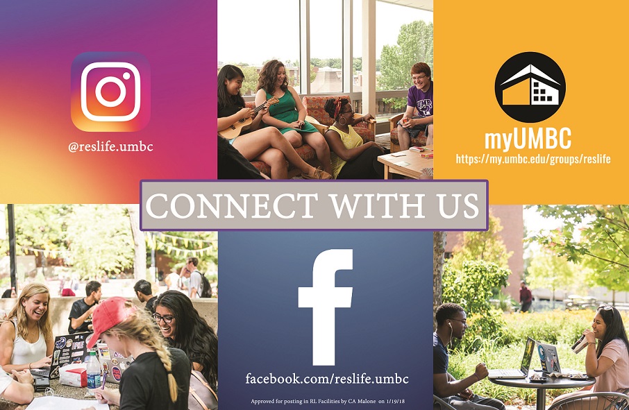 Now that you're living on campus, be sure to Connect with Residential Life. Follow us on Facebook, myUMBC and starting tomorrow Instagram will launch!