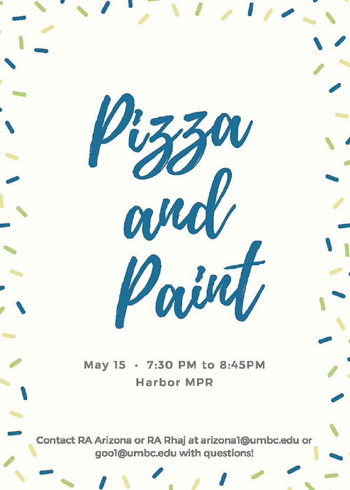On May 15th @ 7:30 PM, Reslife will be sponsoring a Paint Night! Supplies will be provided. THERE WILL BE PIZZA!