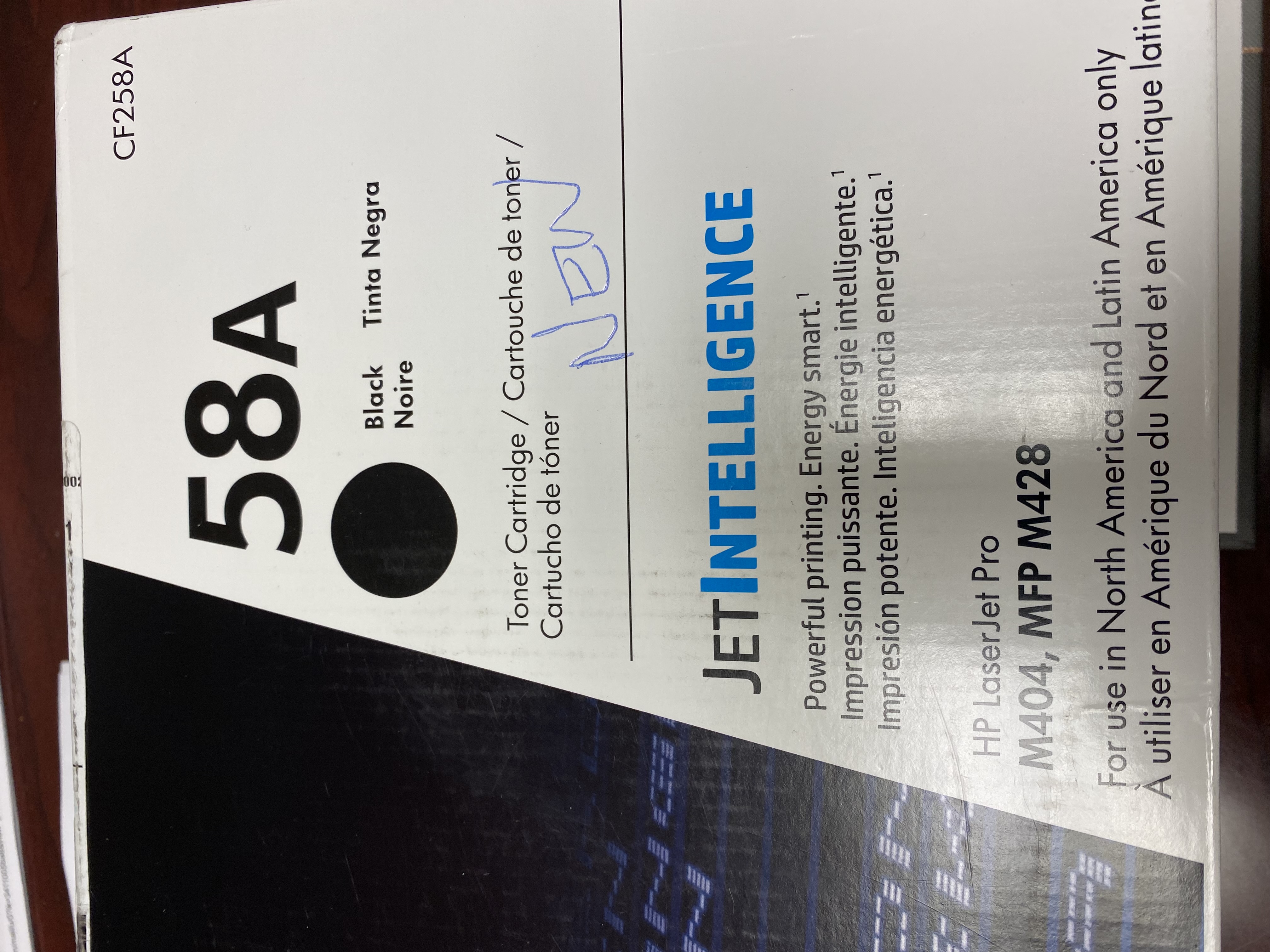 We have a brand new HP Laserjet toner, 58A, black. Compatible with HP Laserjet M404 & MFP M428.