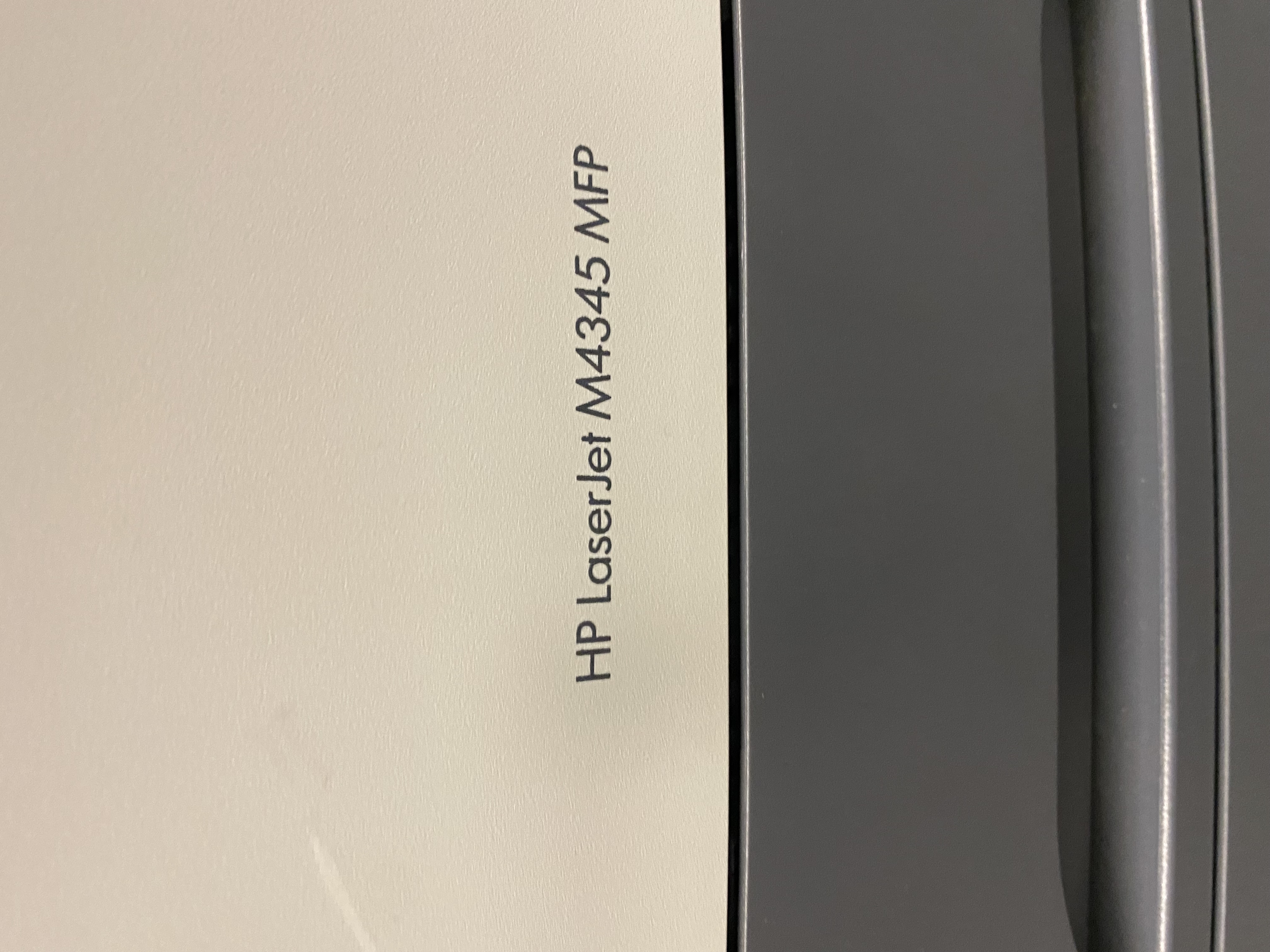 We have a network printer/copier, HP LaserJet M4345 MFP, black ink only, that needs a new home. It's in good shape and has a brand new toner cartridge installed. Located at the UMBC Police Dept. Pictures are attached.