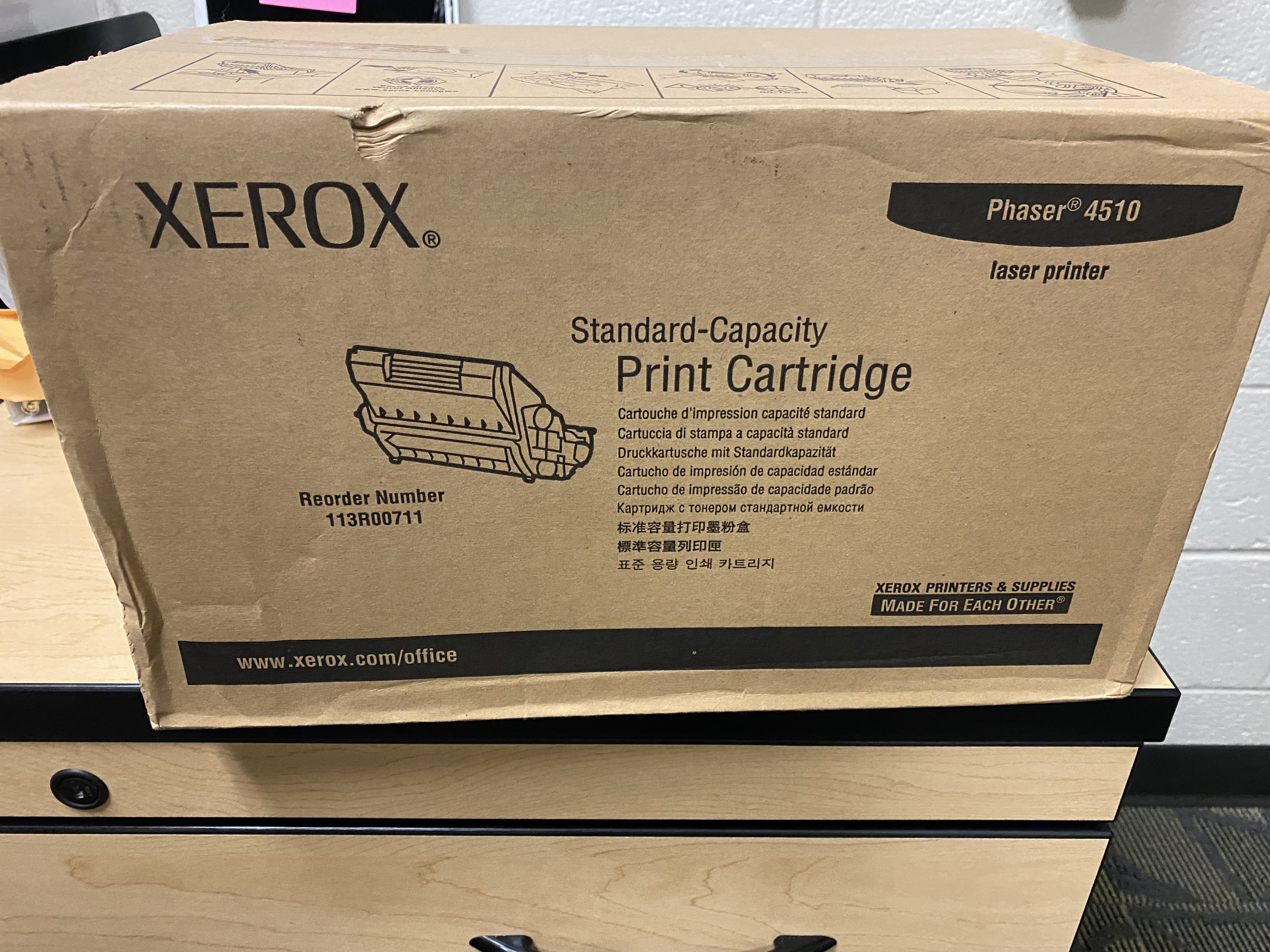 I have a brand new Xerox laser toner (Phaser 4510) that's looking for a new home. If you can use it, feel free to contact Michele Kimery, kimery@umbc.edu, 5-2707.