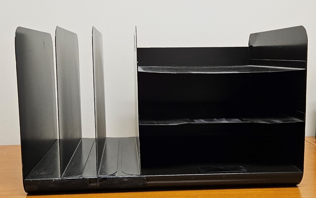 - 2 black heavy-duty file organizers (one vertical, one horizontal)
