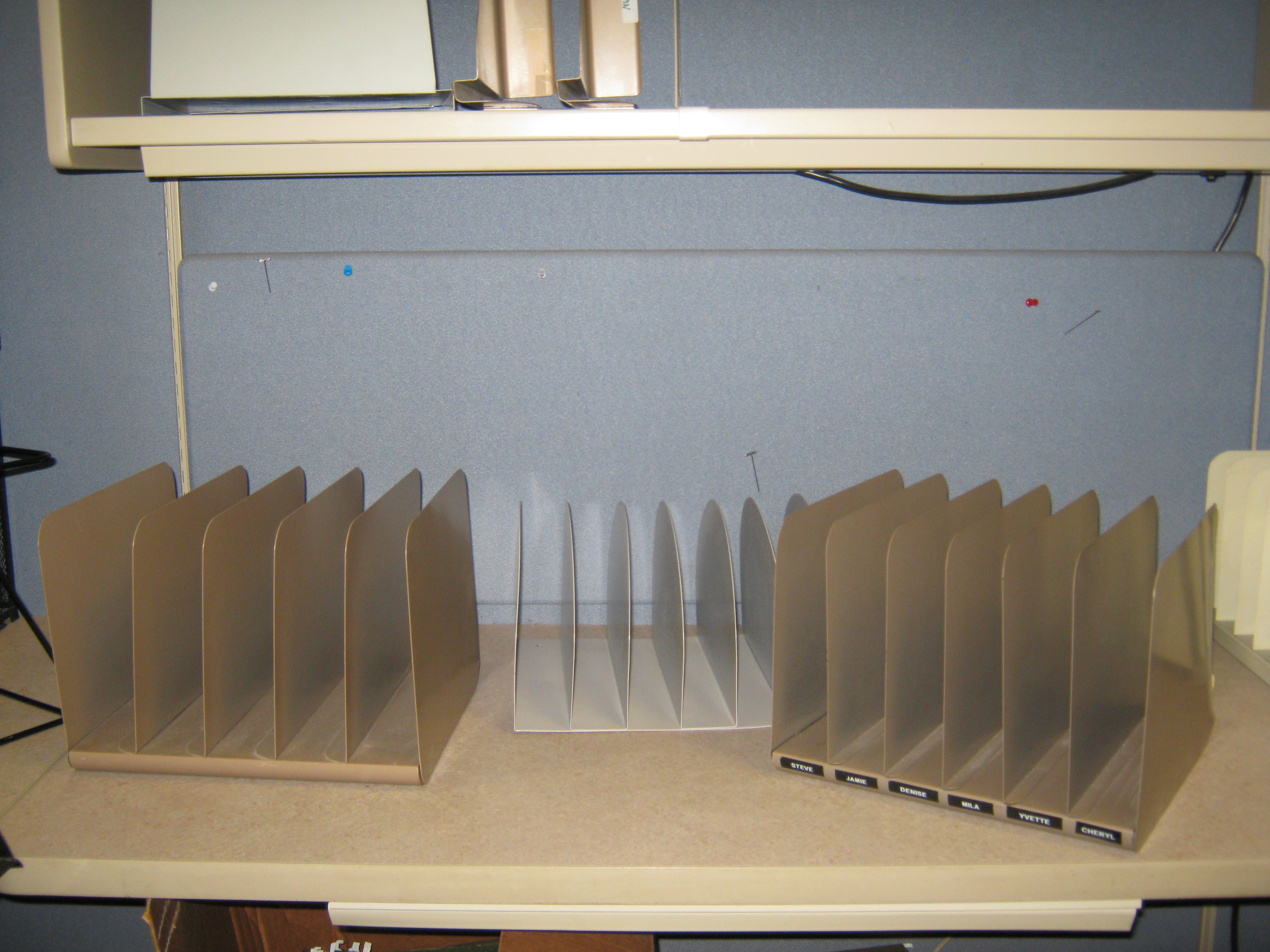 Financial Services has a number of desk organizers and Green Hanging Folders available to anyone on campus that can use them.