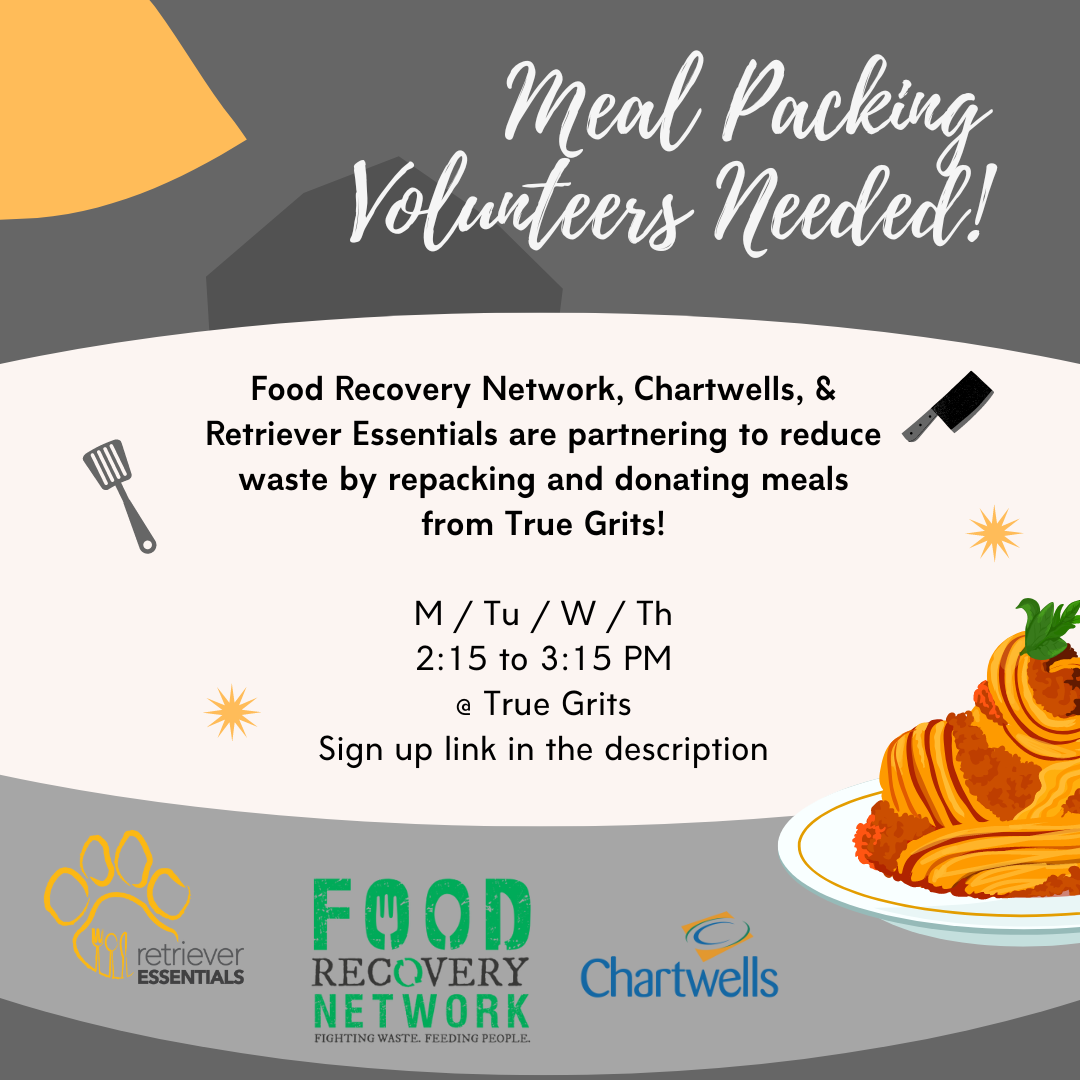 Retriever Essentials is partnering with Food Recovery Network and Chartwells to reduce waste by repacking and donating meals from True Grits!