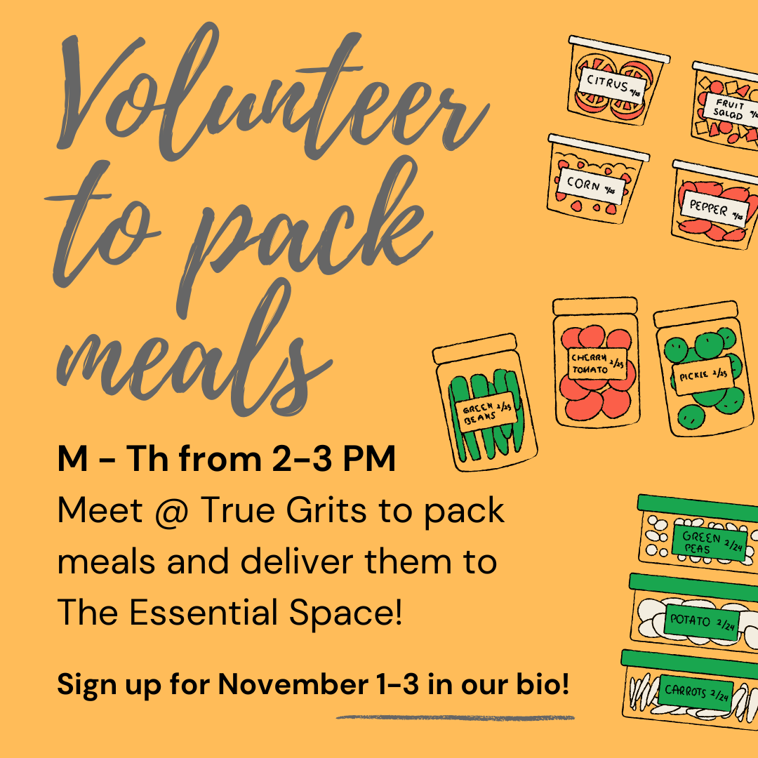 Want to help get ready-to-microwave meals in our pantry for folks in our community who need them most? Sign up to pack to-go meals at True Grits and bring them to Retriever Essentials!
