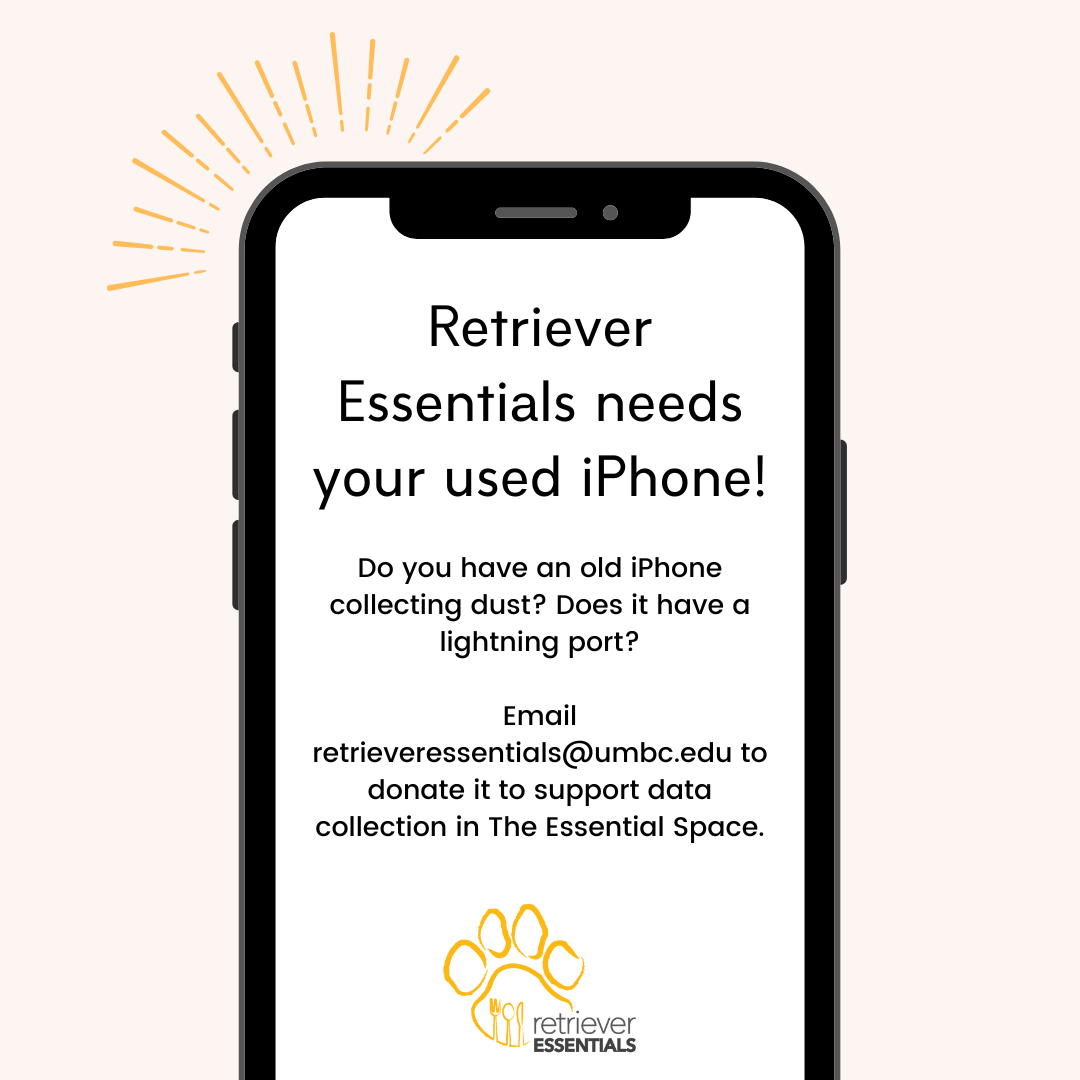 Retriever Essentials is looking for a used iPhone to support data collection in The Essential Space. The data we collect will be used to evaluate our programs and inform our advocacy efforts around food access.
