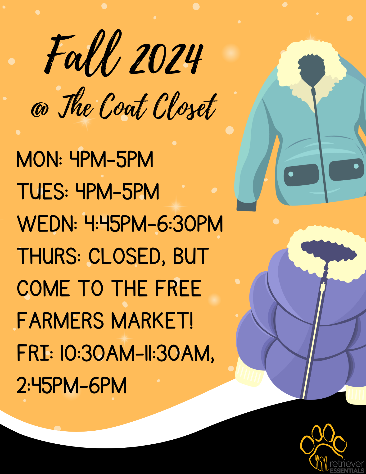 Additionally, check out our Coat Closet for coats, beanies, and other cold weather items that opens TODAY! Located in The Commons 1A10A (next to the bookstore, and across from The Essential Space)
