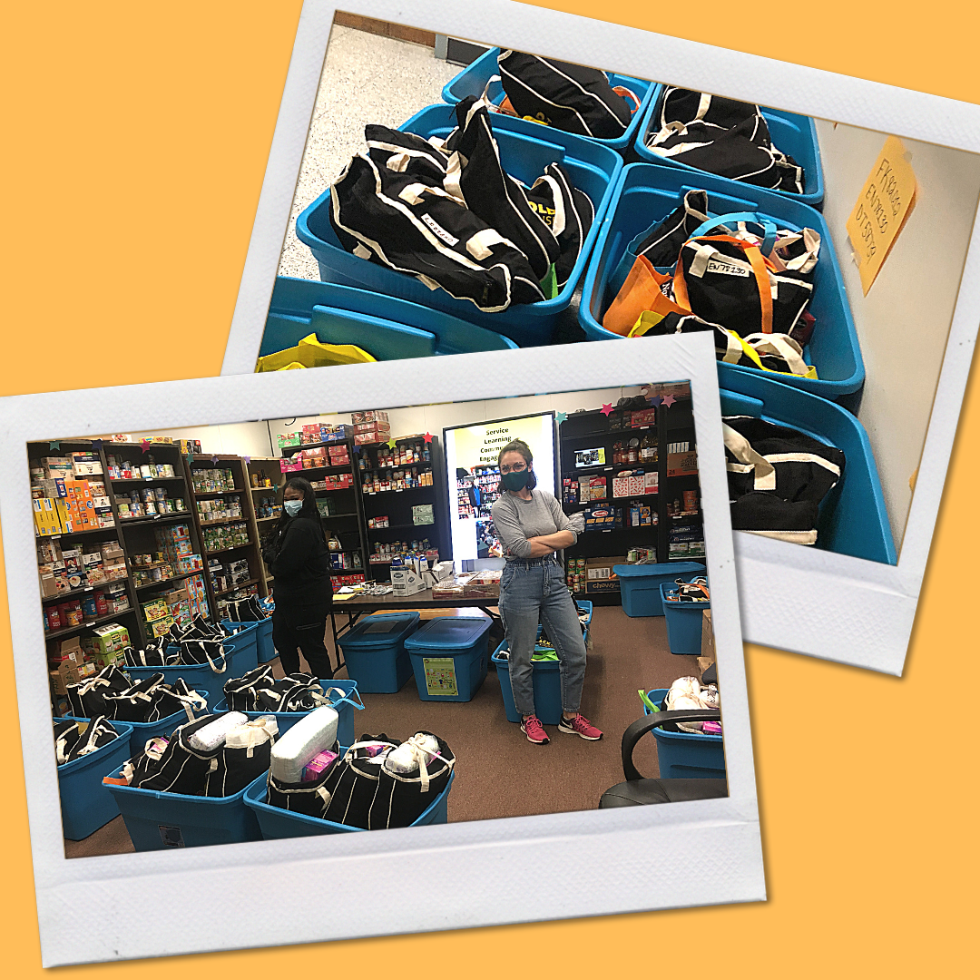 To our volunteers Fariha, Nyla, Sabrina, and Rebecca, thank you so much for helping get our Thanksgiving bags all together and ready to be given out.