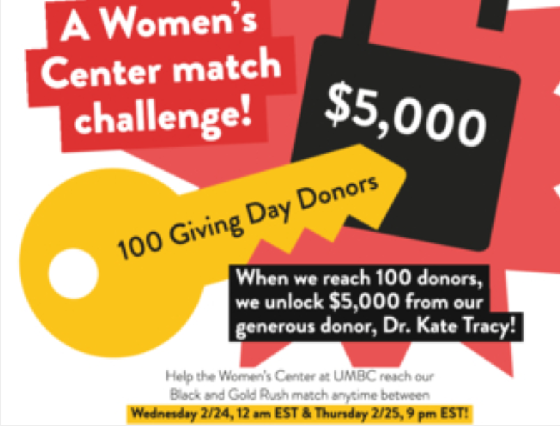 Donate to the Women's Center HERE to help them reach their goal of 100 donors! Dr. Kate Tracy M.A. '01, Ph.D. '03 will donate $5,000 to the Women's Center once 100 Women's Center donors have been reached.