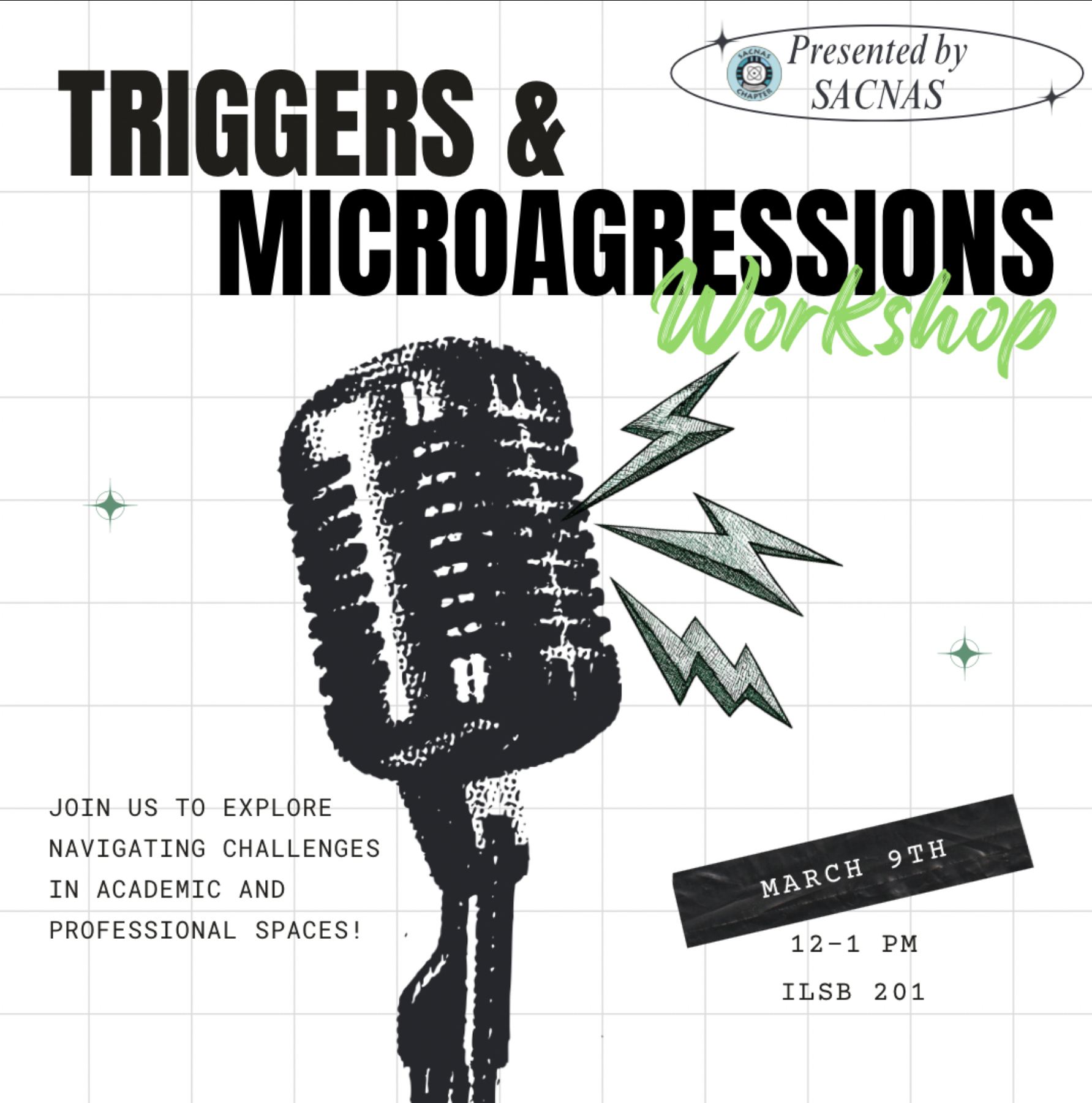 Hello SACNAS fam! We have an upcoming GBM on Triggers and Microaggresions this Monday, March 9th in ILSB 201 at 12PM-1PM. (TODAY!) (WE WILL PROVIDE SNACKS!)
