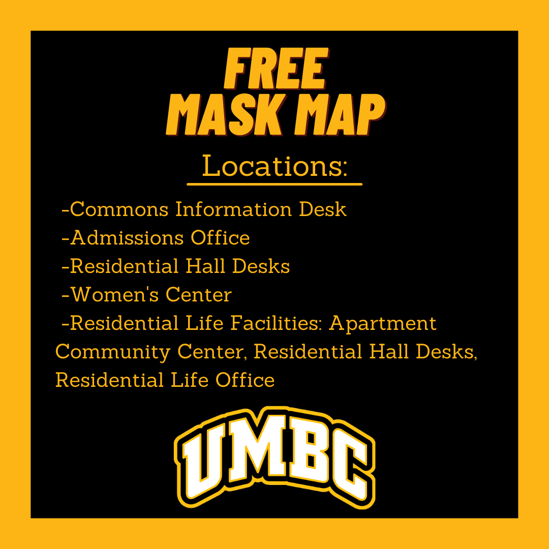 Forgot to bring your mask to campus and need it for class? Don't fret! Free masks are available on campus at the select areas listed above for those who need it! Let's keep our campus safe & mask up.