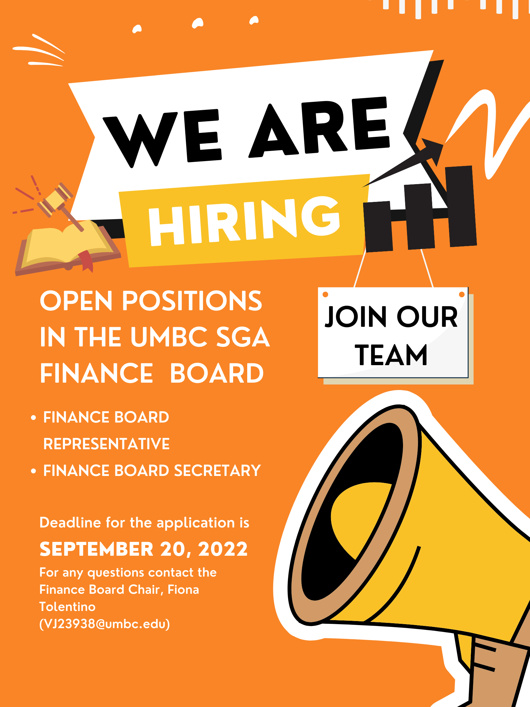 Apply to be a Finance Board Representative for the UMBC SGA!