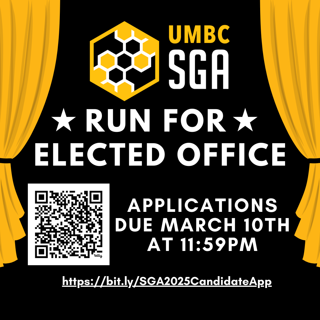 Note: These are elected, paid positions within SGA. For more information on position information, please email the Election Board Chair Olivia Powell at opowell1@umbc.edu