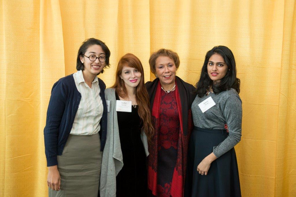 The picture was taken at the recent March 2016 Scholars Luncheon. From left to right, Natalie DeNigris (Senior, Physics & Psychology), Isabel Geisler (Junior, Global Studies and Geographic Information Systems Certificate), Mrs. Jacqueline Hrabowski, and Hanna Dasoo (Senior, Global Studies).