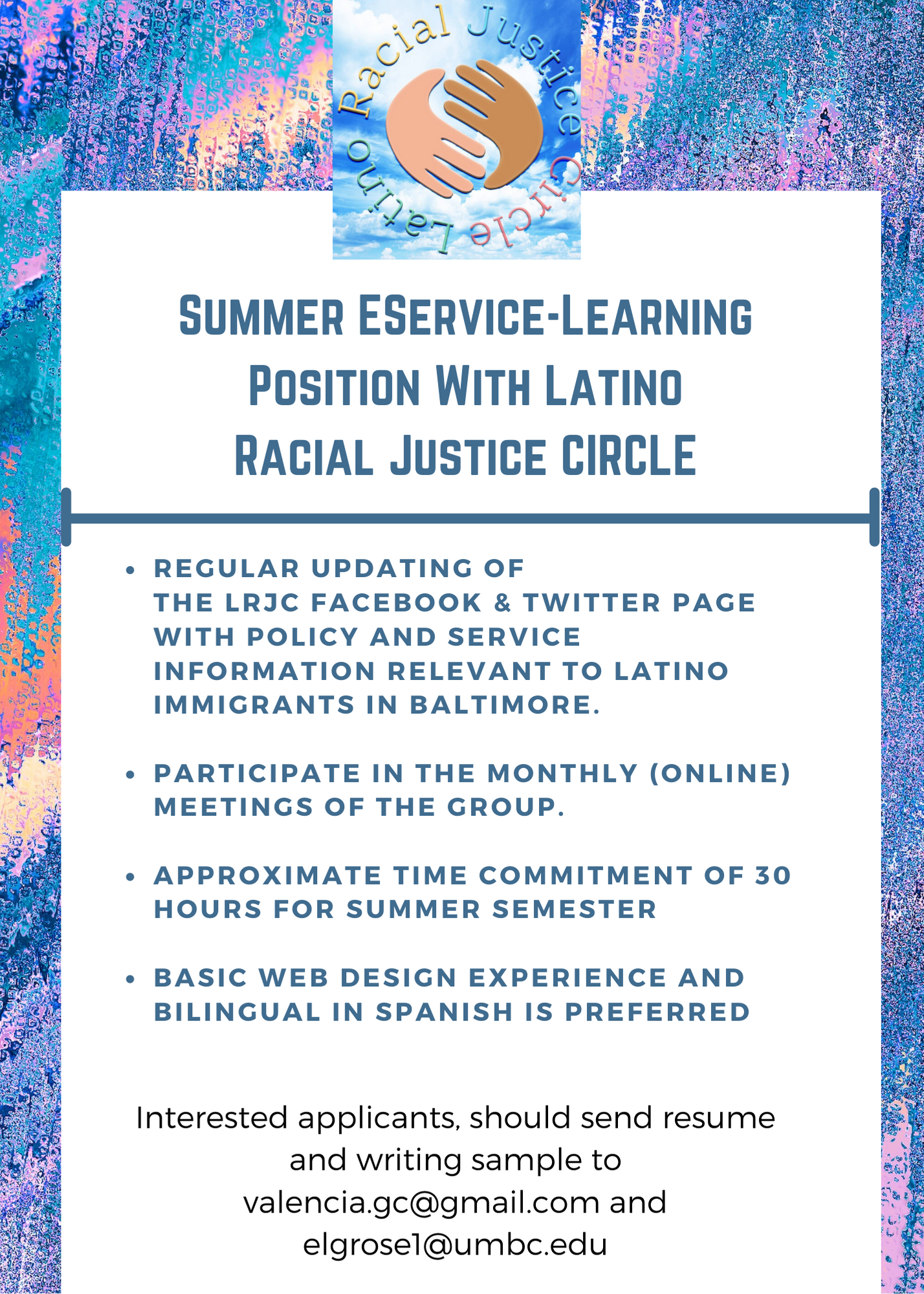 Interested applicants should send a resume and writing sample to valencia.gc@gmail.com and elgrose1@umbc.edu