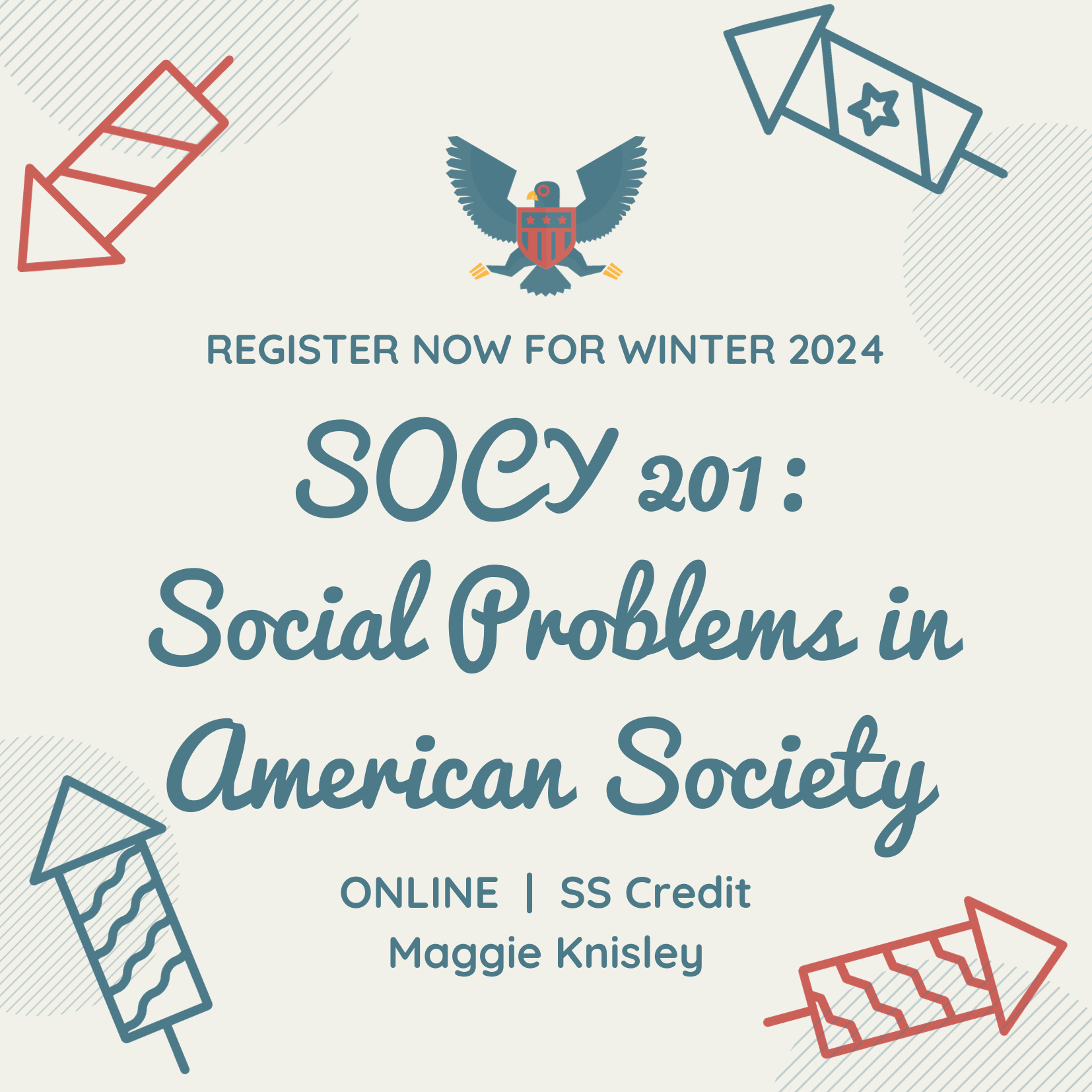 Course Description: A survey of American social problems designed for the general student. Topics typically include race and ethnic conflict, crime and delinquency, population and inequality.