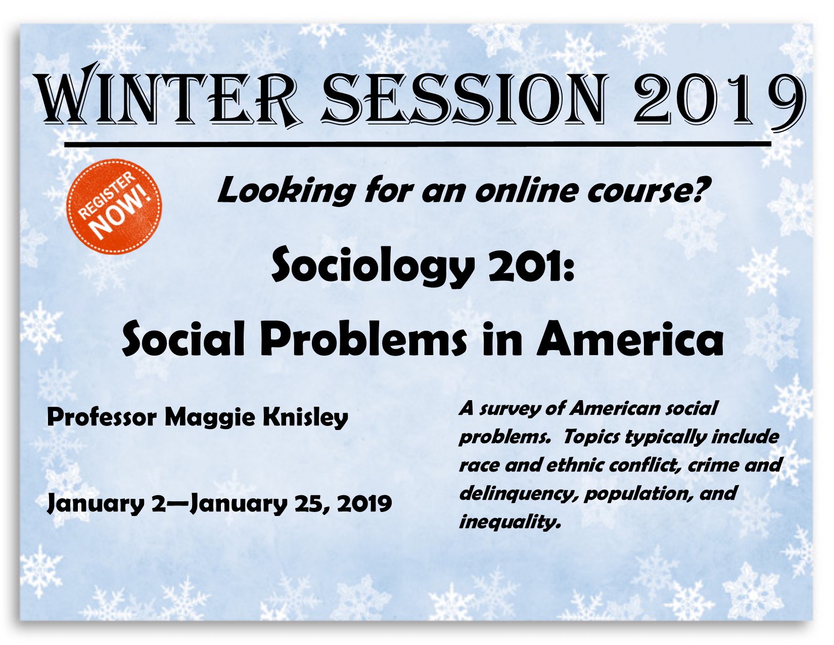 A survey of American social problems designed for the general student. Topics typically include race and ethnic conflict, crime and delinquency, population and inequality.