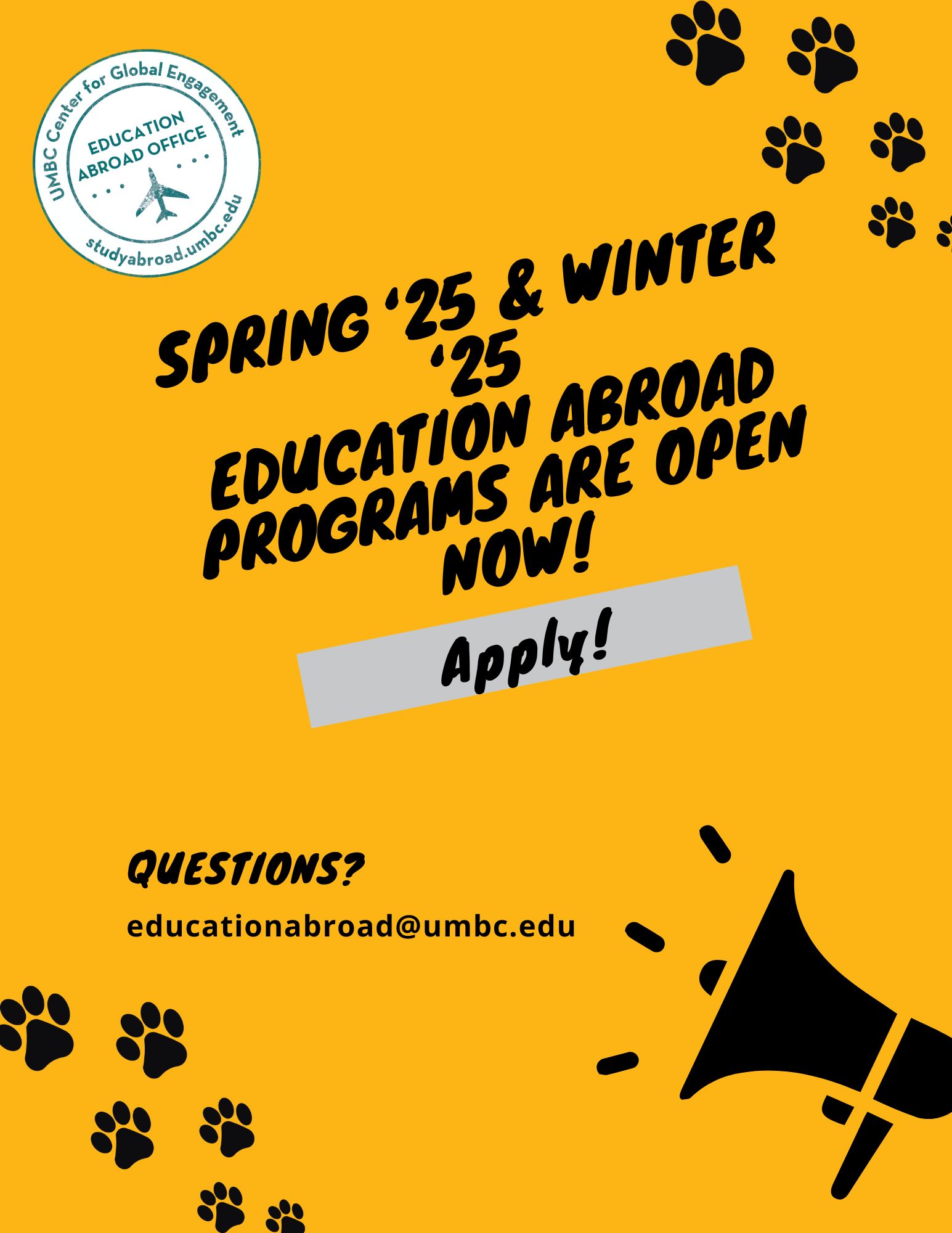 Visit our webpage at studyabroad.umbc.edu for more information, or contact us with questions at educationabroad@umbc.edu.