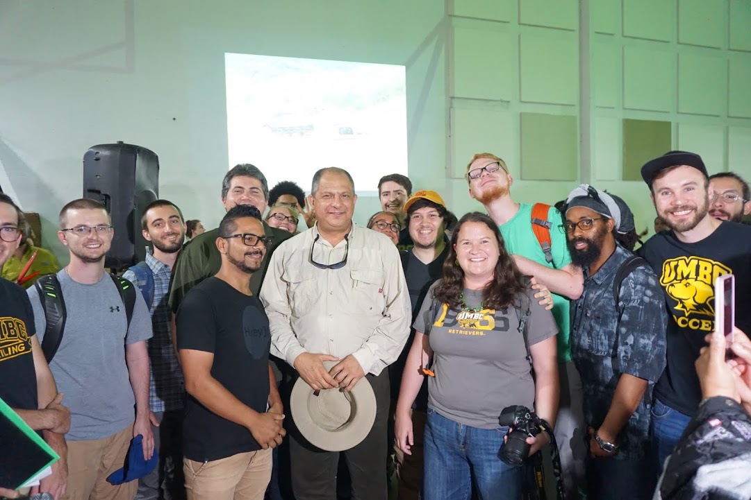 The students made a poster to carry at a local town hall meeting in Monteverde, where the President, Dr. Presidente Luis Guillermo Solis, came for the debate about paving the main road up to the town. After the town hall meeting, the students had the rare opportunity to meet with Dr. Presidente Solis!
