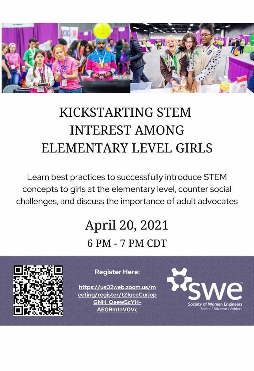 Early exposure to STEM concepts can inspire and prepare girls to pursue careers in engineering and related fields. The SWE Outreach Committee invites adult advocates to participate in a free, interactive workshop on how to engage with elementary-level girls. Learn best practices to successfully introduce STEM concepts to girls at an elementary level, counter social challenges and discuss the importance of adult advocates. Please register and join us.
