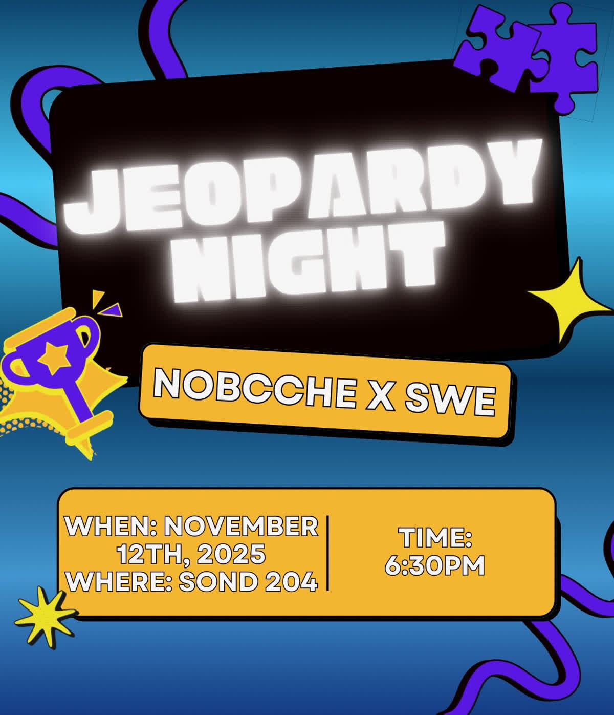 Come visit us for a night of Jeopardy with NOBCChE in Sondheim 204 at 6:30 on November 12th