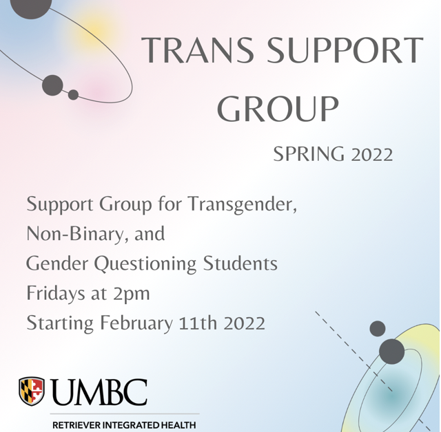 Support Group for Transgender, Non-binary, and Gender Questioning Students is a semester- long, emotional support group for students who identify as trans, genderqueer, gender fluid, non-binary,