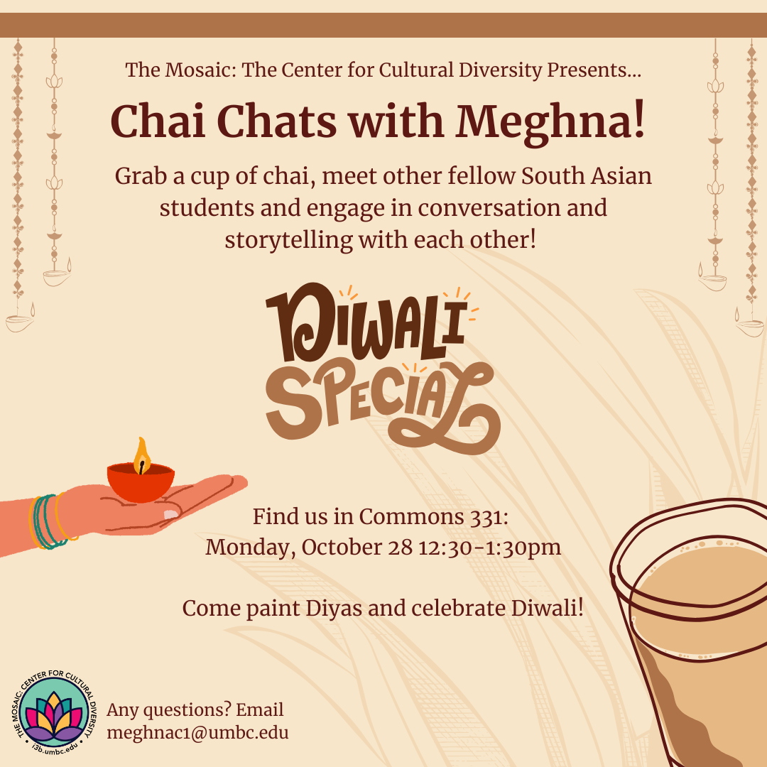 Are you a South Asian student looking for a place to connect, share stories, and build new friendships? Look no further! Join Meghna and your fellow students at Chai Chats, a welcoming space where you can enjoy a free cup of chai while engaging in meaningful conversations.