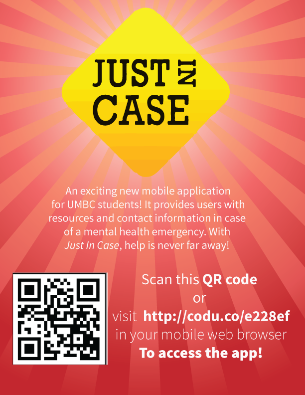 JUST IN CASE is an exciting mobile and web application for UMBC students. With Just In Case, mental health resources are just a click away!