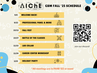 Join the American Institute of Chemical Engineers as we kickoff the start of our semester with our first GBM. Meet our E-board and fellow students and learn what we have to offer for you this...