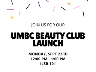 UMBC Beauty Club is excited to announce our official club launch! Join us on Monday, September 23rd from 12:00 PM to 1:00 PM for our kickoff event. Come celebrate the opening of our organization...