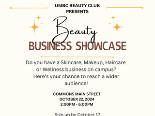 Calling all beauty entrepreneurs at UMBC! The UMBC Beauty Club is happy to present our Beauty Business Showcase! Whether you specialize in makeup, skincare, hair, or any other beauty-related...