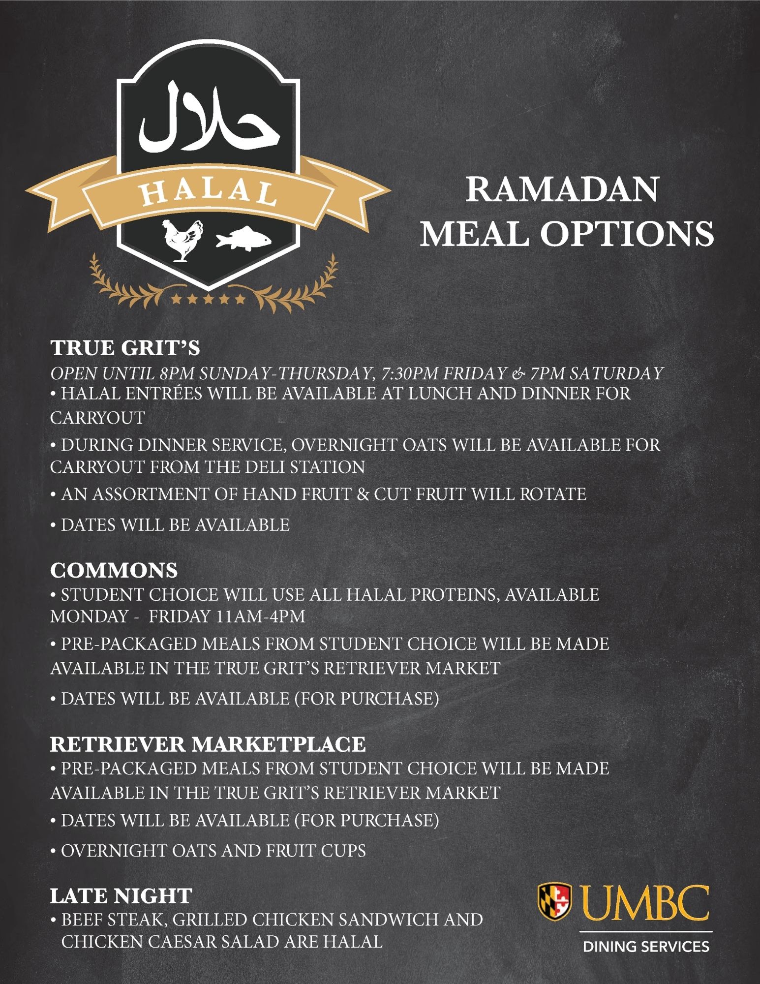 The following flyer contains all of our options during Ramadan. Please reach out with any questions. Enjoy!
