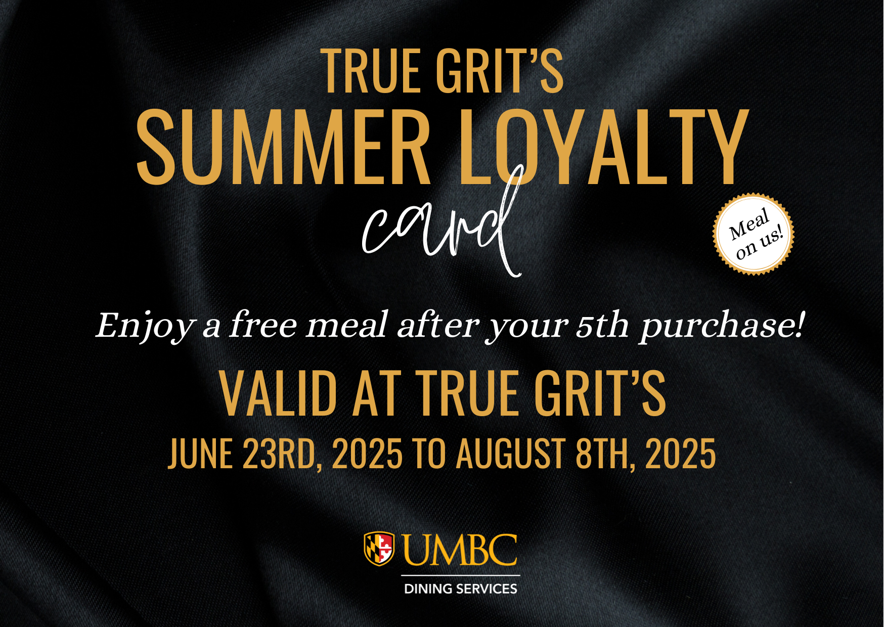 Offer valid for credit purchases only through August 8th, 2025 at True Grit's only. *not valid with meal plan swipes*
