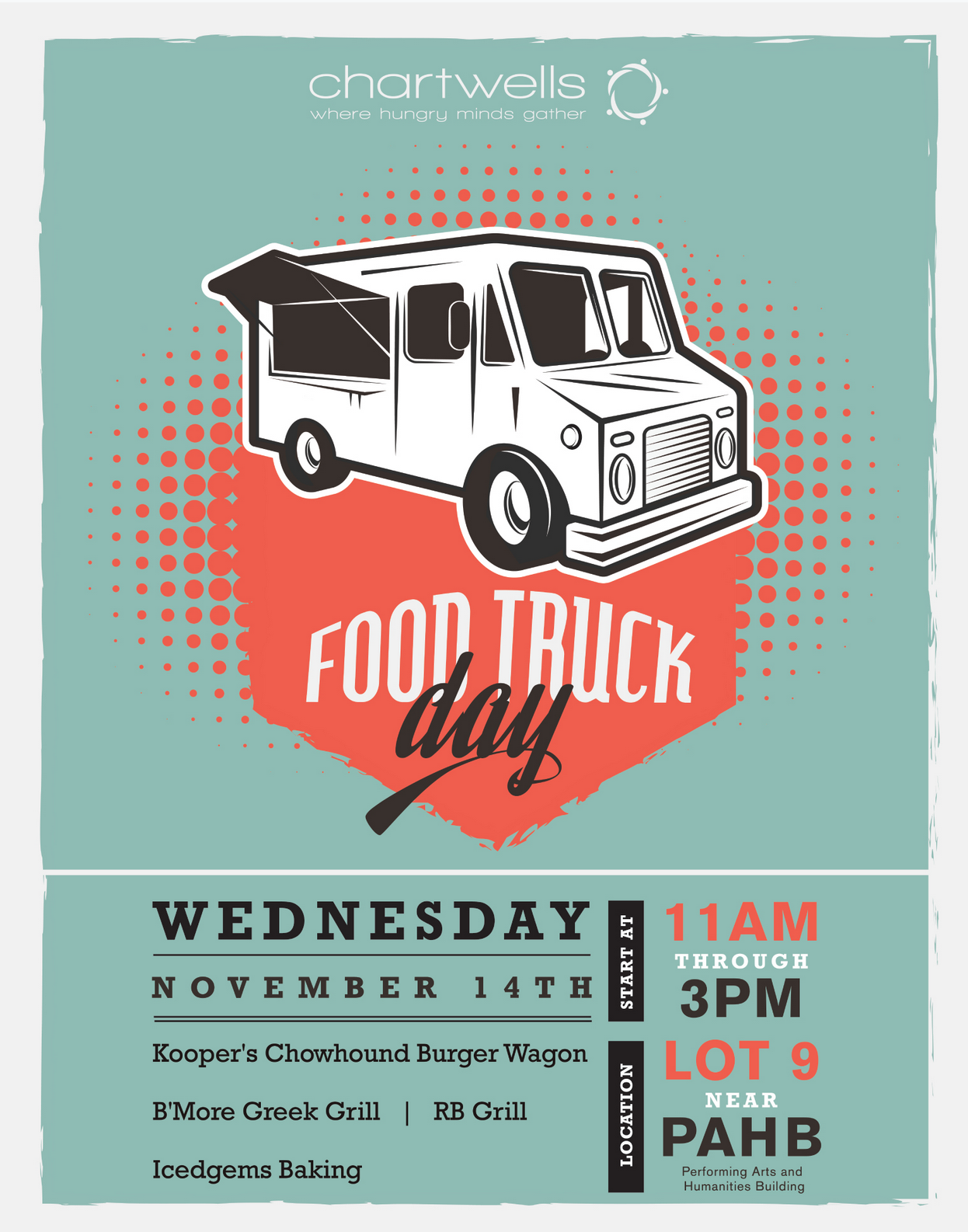 There's a FOOD TRUCK DAY this week! Join us in Lot 9 near the PAHB on Wednesday from 11am-3pm! You'll be able to enjoy your favorites from B'More Greek, RB Grill (Halal), Kooper's Chowhound and Icedgems!