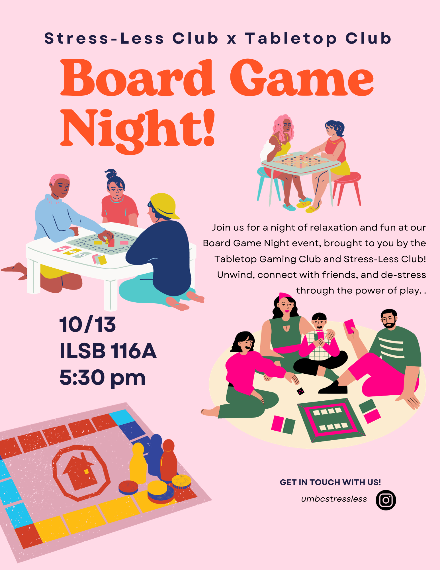 Major announcement, we are collaborating with the Stress-Less club for a meeting this Friday (10/13) where we will be meeting in ISLB 116A at 5:30 pm. Here a link to the Stress-Less club instagram https://www.instagram.com/umbcstressless/?utm_source=ig_web_button_share_sheet&igshid=ZDNlZDc0MzIxNw==.
