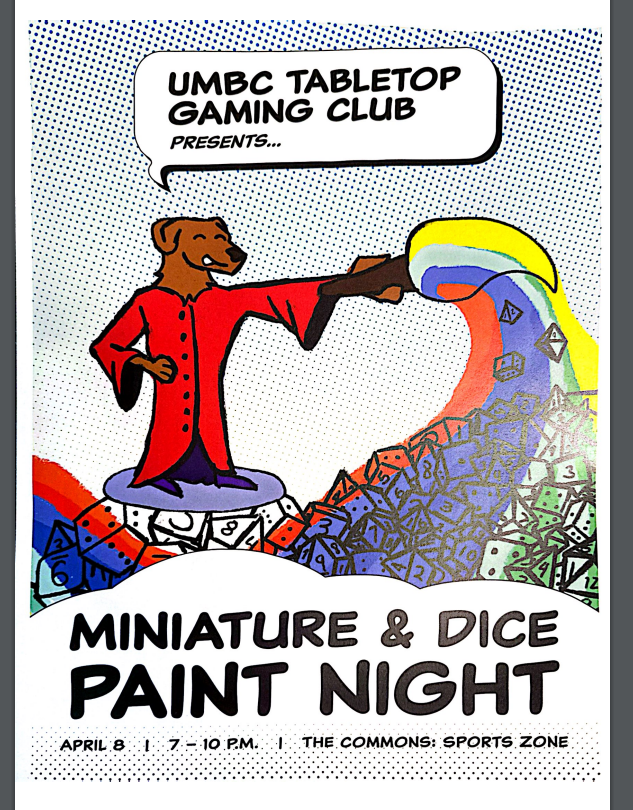 This week we have our semester-ly Paint Night event!! With this being the third installment of the event, we have decided to ramp things up. We have more minis, more dice, and more paint, and we are very excited to see what you guys decide to make!! To account for space and our amazing past attendance at this event, this time around we will be hosting this in the Commons Sports Zone!! So come on down and paint some minis!