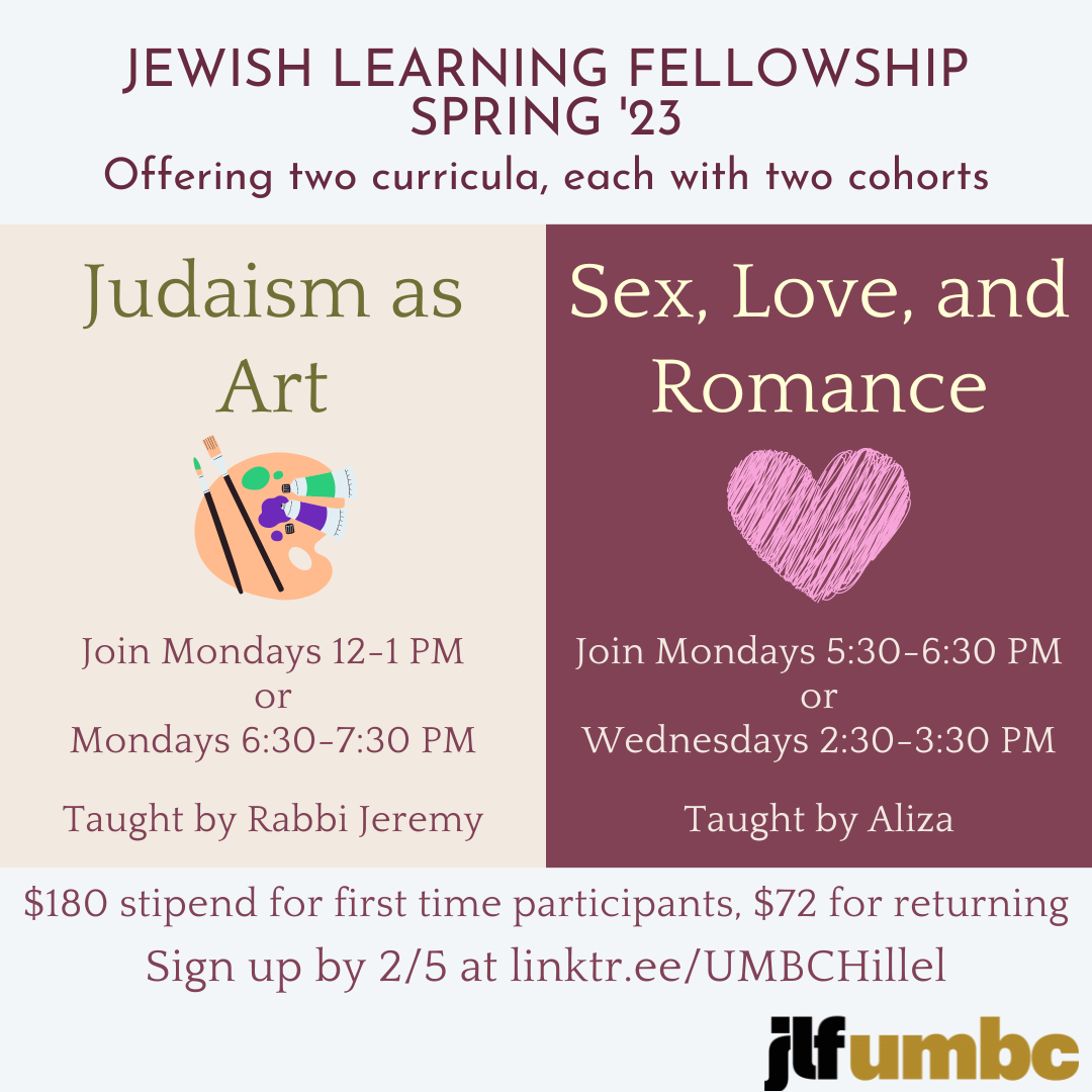 We are excited to announce that we are offering FOUR cohorts of Jewish Learning Fellowship this semester.