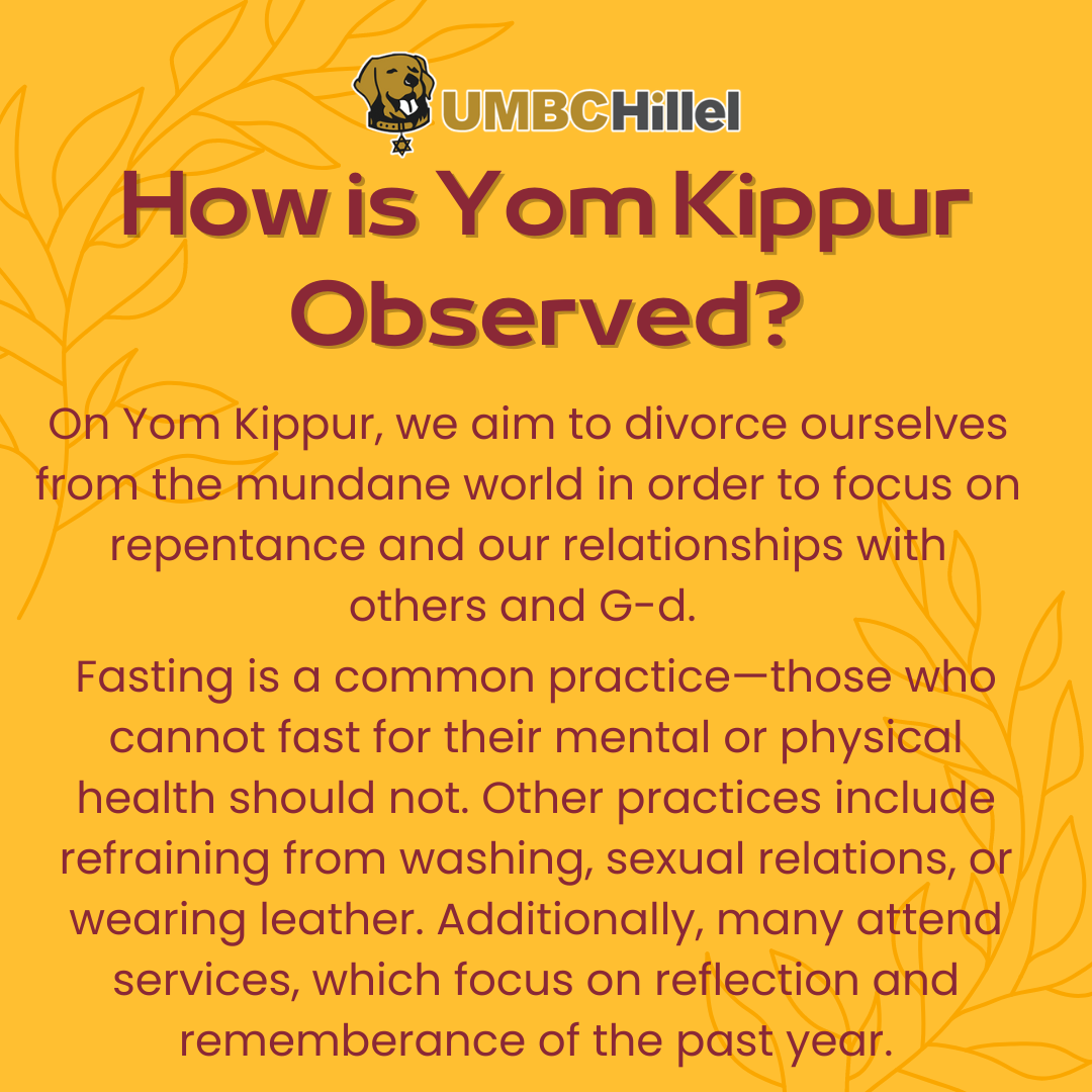 Fasting is a common practice—those who cannot fast for their mental or physical health should not. Other practices include refraining from washing, sexual relations, or wearing leather. Additionally, many attend services, which focus on reflection and remembrance of the past year.