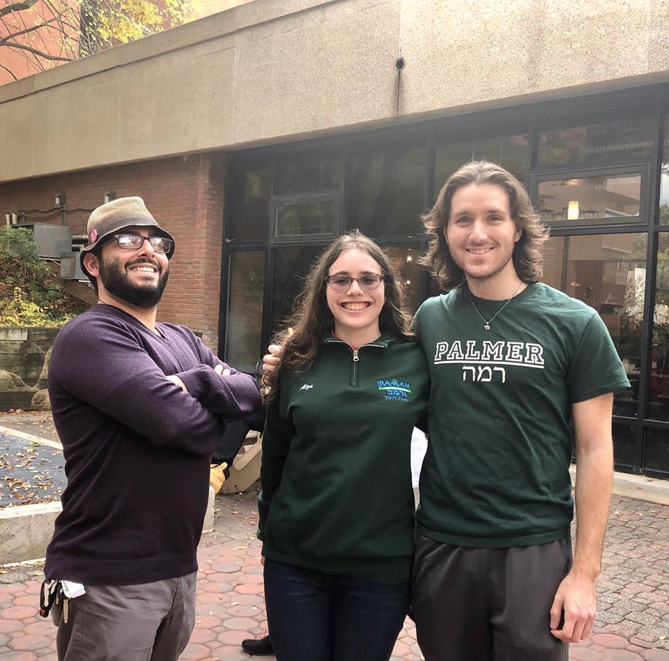 Imagine Description: Rabbi Jeremy, Aliza, and recent alum Ryan standing outside of the University Center.