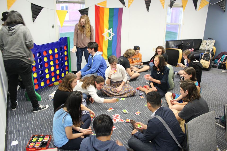 Let’s be honest, if you’re in college then this is one of your top priorities. And between Aliza Silverman, our Hillel Engagement Associate and "hired Jewish mother", there is plenty of free food, both at our free weekly Shabbat dinners and the rest of the week! The office is always stocked with snacks, and students can make requests. Beyond these options, there are opportunities to get lunch with Hillel staff and leadership, so you can get food and company!Image Description: A variety of hamantashen set out on a table in Commons, ready to be handed out to passer-by!